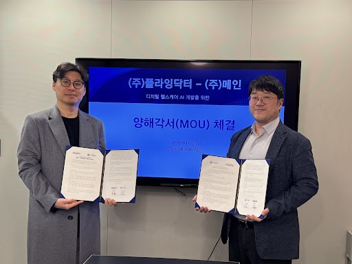 2025년 4월 4일 - ㈜메인(대표이사 육현)과 ㈜플라잉닥터(대표이사 김도연)는 디지털 헬스케어 분야의 혁신을 위한 전략적 협력 관계를 맺기 위해 양해각서(MOU)를 체결했다.