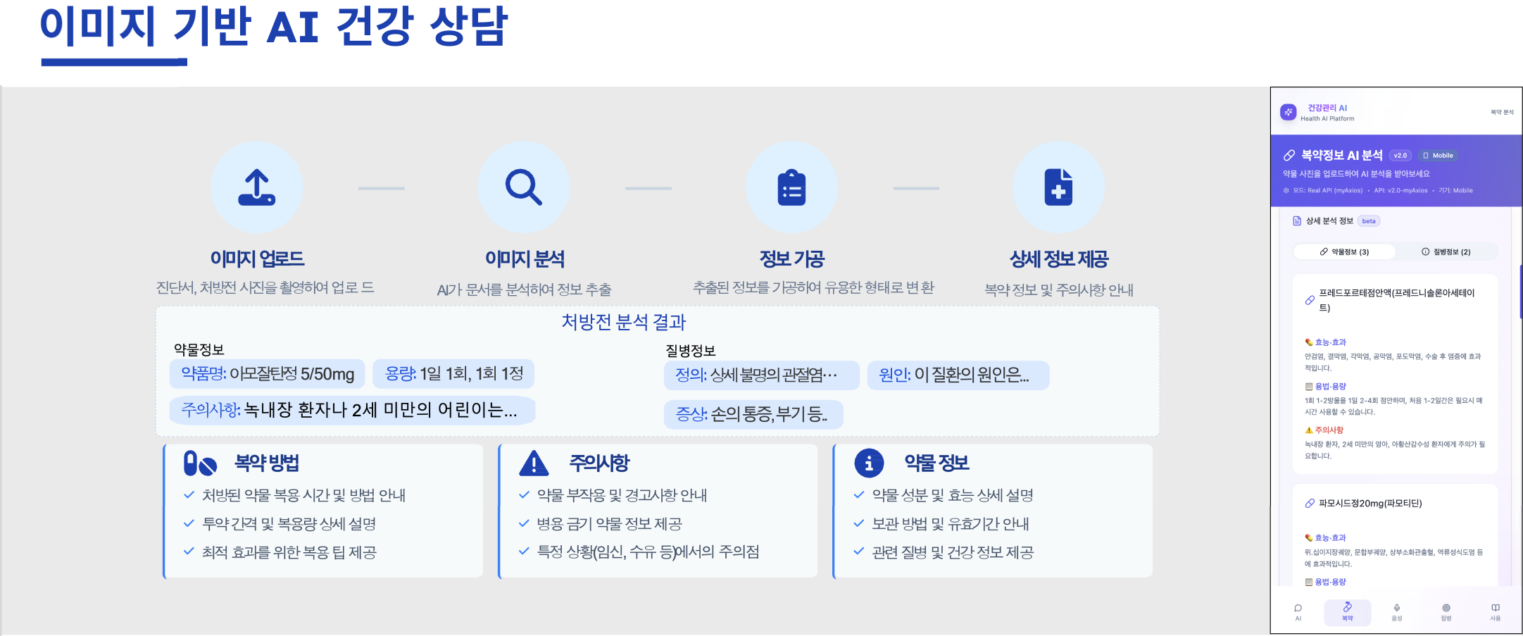 진단서,처방전등 사진 업로드 후 AI 기반 복약 방법, 질병 정보, 건강 관리등 제공 서비스