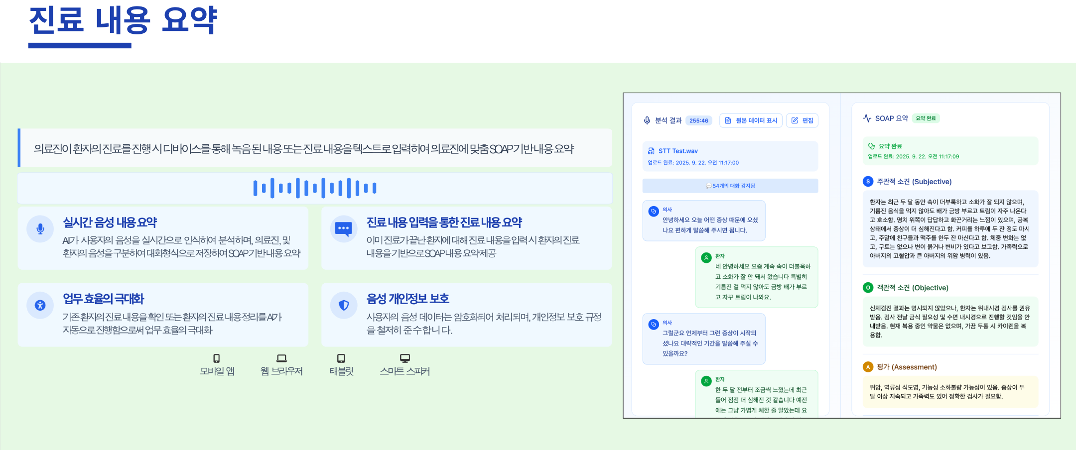 의료진과 환자간의 진료 내용을 SOAP 기반으로 자동으로 요약 해주는 서비스